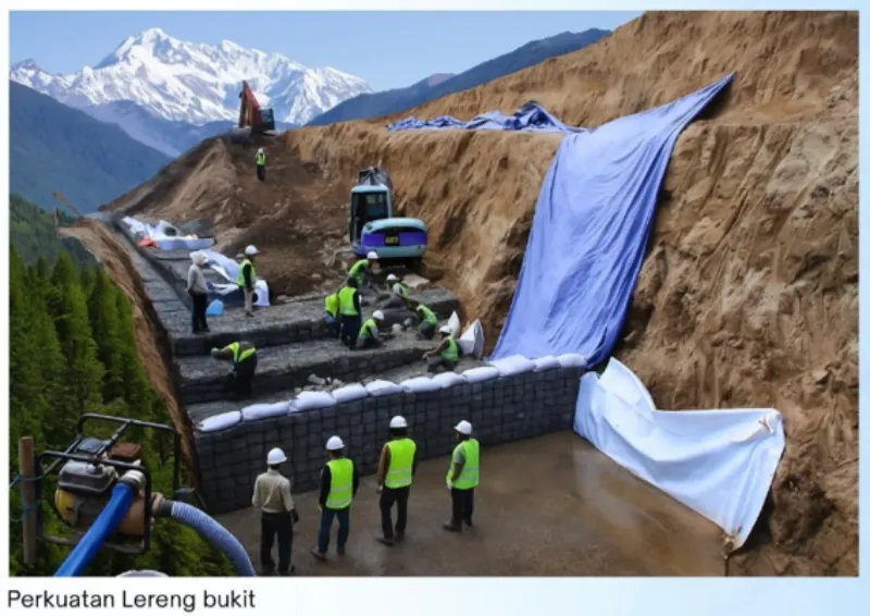 Kombinasi ini memberikan solusi efektif untuk stabilisasi lereng, dinding penahan tanah, hingga perlindungan tepi sungai atau pantai. Hasilnya adalah struktur yang kuat, stabil, drainable, dan tahan lama untuk berbagai kondisi lapangan.
