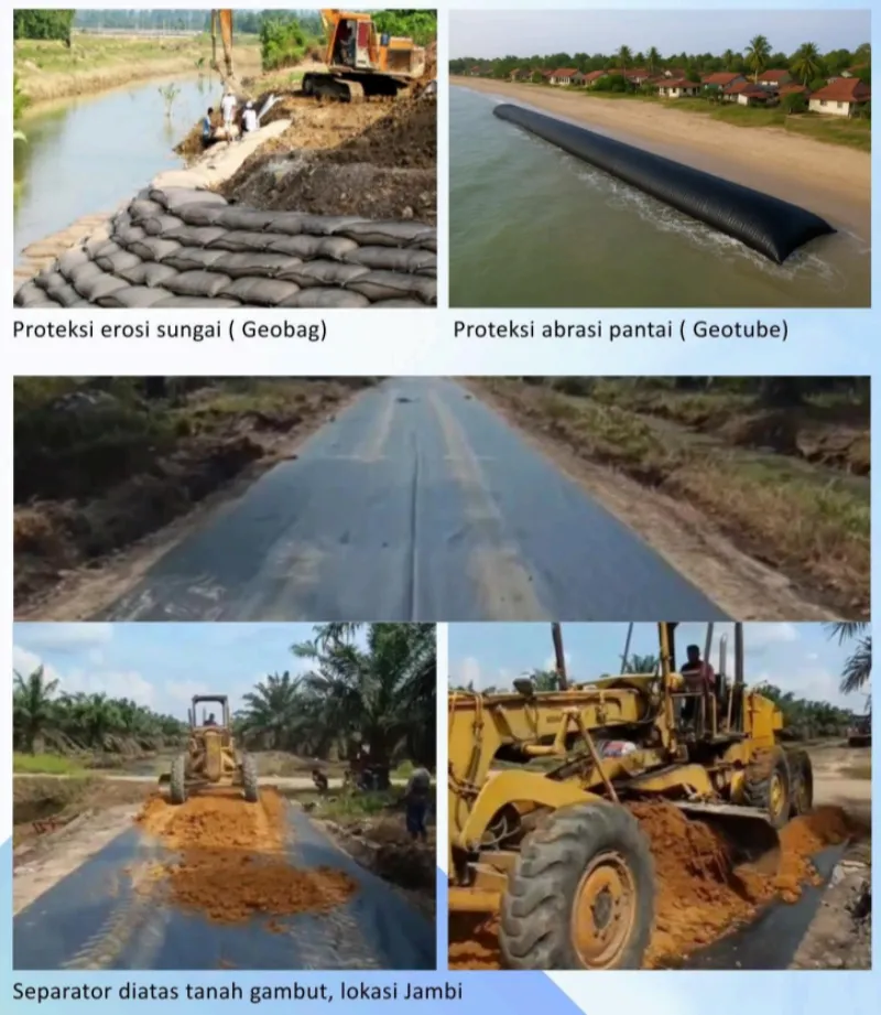 - Kekuatan Tarik Tinggi: Memberikan daya tahan terhadap beban besar dan tarikan yang sering terjadi pada tanah timbunan atau konstruksi.